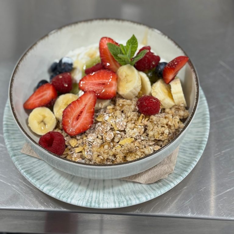Opciones saladas: tostas, ensaladas, poke bowls y platos principales, preparados con la misma atención al detalle que nuestras creaciones dulces.